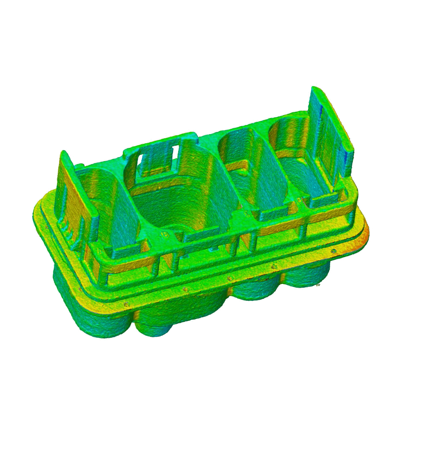 Im Vordergrund stand die Genauigkeit des Messergebnisses über das gesamte 3D-Teilund nicht nur für den Bereich, welcher mit der optischen Messtechnik erfasst werden kann. Hier hat die industrielle Computertomographie klare Vorteile. Im Vergleich zu taktilen oder optischen Messmaschinen können mit dem Computertomographen (CT) auch innen liegende Merkmale mit hoher Präzision zerstörungsfrei gemessen werden. Insbesondere bei Messaufgaben transparenter Bauteile sowie Teilen mit hochglänzender Spiegeloberfläche hat die optische Messtechnik klar ihre Grenzen. Ein Messen ohne vorherige Behandlung mit einem Laser-Scanning-Entspiegelungsspray ist bei solchen Teilen nicht möglich. Zudem ist die geforderte Messgenauigkeit mit einem Sprayauftrag nicht erreichbar. Ein weiterer großer Vorteil der industriellen Computertomographie liegt in der Geschwindigkeit der Scans und Auswertung. So können tausende Messpunkte binnen Sekunden vermessen werden. Zudem bietet die Durchführung sogenannter Paletten-Scans (mehrere Bauteile in einem Scan) eine Verkürzung der Prozesszyklen und eine Erhöhung der Wirtschaftlichkeit.